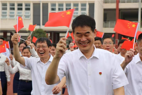 “我和我的祖國(guó),一刻也不能分割。無(wú)論我走到哪里,都流出一首贊歌……”8月26日,在鄲城縣第二實(shí)驗(yàn)小學(xué),縣教體局黨組書(shū)記、局長(zhǎng)劉現(xiàn)營(yíng)帶領(lǐng)局黨組成員、機(jī)關(guān)各黨支部書(shū)記和二實(shí)小全體師生同唱《我和我的祖國(guó)》,用歌聲表達(dá)全縣教育人對(duì)祖國(guó)的無(wú)限熱愛(ài)。