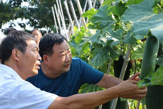 炎炎夏日,大棚下的侯俊昌汗水再次濕透,他撫摸著一串串紫紅色的葡萄說,這都是改變貧窮的“紫珍珠”啊,只要我們班子上下齊心協(xié)力,小小的葡萄也能幫我們“拔掉窮根?!辈粌H僅是葡萄產(chǎn)業(yè),村里的婦聯(lián)主任徐桂蘭也主動帶頭創(chuàng)業(yè),承包了80畝的田地,種起了優(yōu)質(zhì)冬瓜,畝產(chǎn)上萬斤,通過駐村幫扶,提供產(chǎn)銷信息,遠(yuǎn)銷到省內(nèi)外多地。秋季種小麥、夏季種冬瓜的模式,畝產(chǎn)收益均在4000元以上。她平時鼓勵村里貧困戶到冬瓜地打工,每年帶動近20戶貧困戶,每戶增加收益近5000元。”侯俊昌告訴我們,“產(chǎn)業(yè)扶貧,造血扶貧在位口村已經(jīng)深深扎根,同時也吸引了很多在外務(wù)工的有識青年返鄉(xiāng)創(chuàng)業(yè),有的做起了尾毛生意、有的做起了毛刷生意?,F(xiàn)在全村興起人人講創(chuàng)業(yè),戶戶拼經(jīng)濟(jì)的良好氛圍?!?/p>