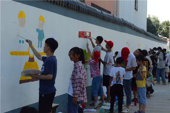 活動現(xiàn)場,參與者們從設(shè)計構(gòu)圖到勾勒輪廓,從調(diào)制顏料到搭配色彩,每一個步驟、每一道工序都一絲不茍。大家圍繞“禮贊新中國 歌頌新時代”這一主題,在近百米長的墻面上認真作畫,只見現(xiàn)場參與者工筆勾線、揮毫上色,經(jīng)過一個多小時的創(chuàng)作,“社會主義核心價值觀”“中國夢”“市民文明公約”等愛國元素躍然墻上……內(nèi)容豐富、形式多樣,一幅幅作品色彩明快、質(zhì)樸純?nèi)?,充分展示了書畫志愿者們對祖國和家鄉(xiāng)的熱愛,對藝術(shù)的追求和對美好生活的向往,宣傳了中國傳統(tǒng)書畫藝術(shù),提升了新時代文化自信,為該縣美術(shù)愛好者帶來了一場藝術(shù)盛宴。
