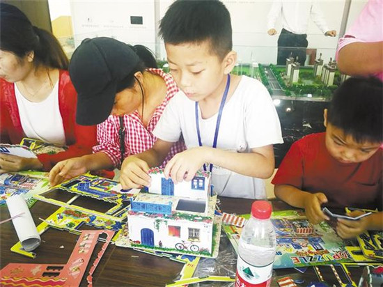 9月7日,約100名周口報業(yè)商水小記者在商水縣商寧路建業(yè)城售樓部參加“愛家愛商水”手工拼裝房大賽活動。