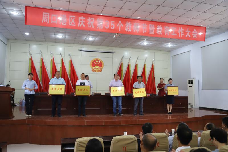 9月10日,周口港區(qū)召開(kāi)慶祝第35個(gè)教師節(jié)暨教育工作大會(huì),回顧總結(jié)上一學(xué)年港區(qū)教育工作,部署新學(xué)年工作任務(wù),大會(huì)對(duì)港區(qū)優(yōu)秀教育工作者和單位進(jìn)行隆重表彰。港區(qū)管委會(huì)主任程若光在會(huì)上對(duì)港區(qū)教育工作者提出殷切期望,港區(qū)黨委委員張東立,黨委委員、管委會(huì)副主任劉學(xué)慶,副調(diào)研員李素芹,港區(qū)公安分局局長(zhǎng)何學(xué)民參加會(huì)議。