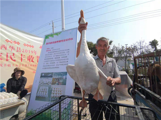 上午10時許,記者在現(xiàn)場看到,這邊廣場舞大賽舉辦正酣,那邊農產(chǎn)品展臺人頭攢動?!斑?,家里養(yǎng)的大鵝也來‘參會’了,你看多有意思?!痹陴B(yǎng)殖區(qū)展臺前,前去參觀的一群婦女開心地說。村民趙大姐說,豐收節(jié)真是農民自己的節(jié)日,誰能想到家里的大鵝也能成為“稀罕物”,擺到展臺前了?旁邊的養(yǎng)殖合作社負責人接過話茬:“你可別小看這大鵝,一年給俺帶來幾百萬元收入呢?!?/p>