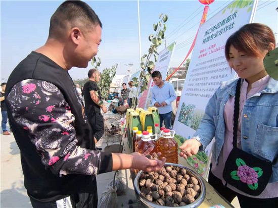 一問一答間,爽朗的笑聲響徹節(jié)日上空,農民們喜笑顏開,傳遞出濃濃的幸福。大棗、黑木耳、小麥粉、粉條等西華縣各具特色的農產(chǎn)品紛紛亮相,除了展示各自的“增收實力”,也展示出幾年來發(fā)展農業(yè)特色經(jīng)濟的豐碩成果?!罢钆_,農民唱戲,每年一度的農民豐收節(jié)既是農民歡樂的節(jié)日,也是展銷農產(chǎn)品的紐帶平臺,今天我們奉母鎮(zhèn)展示了本地原生態(tài)粉條和純糧美酒,希望借助豐收節(jié)機遇,拓寬銷路實現(xiàn)農民增收?!蔽魅A縣奉母鎮(zhèn)黨委書記陳鵬告訴記者。