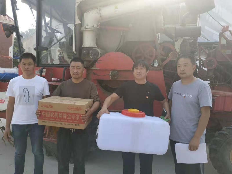 9月28日,西華縣大王莊鄉(xiāng)政府院內熱鬧非凡,來自該鄉(xiāng)的農機手早早便排起了長隊,等待師傅們?yōu)樽约旱氖崭顧C安裝降塵設備。