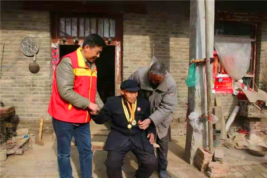 趙隆成是衡霞光走訪的第一名老兵。老人1925年出生,高賢鄉(xiāng)聚臺崗行政村人,16歲加入中國共產(chǎn)黨,1943年開封戰(zhàn)役中腳跟受傷,行動不便?!肮伯a(chǎn)黨好,共產(chǎn)黨的干部們好啊。” 得知來訪, 老人拉住衡霞光的手激動地說。