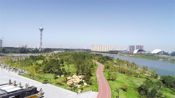 據(jù)了解,沙潁河公園一期總投資19.3億元,西起周口大道,東至武盛大道,全長5.5公里,建設(shè)內(nèi)容主要是景觀工程、堤防工程、河道護砌工程、道路工程。南北兩岸景觀總面積211公頃,其中綠化面積172公頃,硬化面積39公頃,綠地率81.5%,單側(cè)景觀最寬處500米,最窄處100米,栽植各種喬木、灌木、應(yīng)季花草、草皮等,實現(xiàn)三季有花、四季常青。