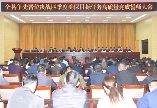 乘著周口市2019年第三季度項(xiàng)目觀摩的東風(fēng),扶溝吹響了決戰(zhàn)第四季度、奮力推動(dòng)經(jīng)濟(jì)社會(huì)高質(zhì)量發(fā)展的“沖鋒號(hào)”。10月21日,扶溝縣召開(kāi)爭(zhēng)先晉位決戰(zhàn)四季度確保全縣目標(biāo)任務(wù)高質(zhì)量完成誓師大會(huì),深入貫徹習(xí)近平總書記在河南考察調(diào)研指示精神,動(dòng)員全縣上下進(jìn)一步認(rèn)清形勢(shì),堅(jiān)定信心,鼓足干勁,加大力度,大干苦干,決戰(zhàn)決勝,全力以赴做好第四季度工作,確保全年目標(biāo)任務(wù)高質(zhì)量完成。張穎波、詹凱、姜永來(lái)、張建中等縣四個(gè)班子領(lǐng)導(dǎo)出席會(huì)議??h委副書記、政法委書記詹凱主持會(huì)議。