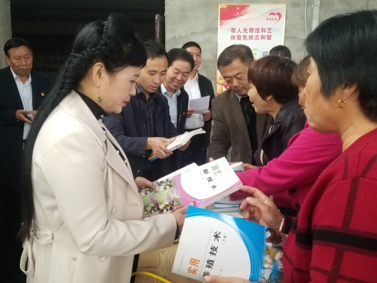 當天,淮陽縣職業(yè)中專正在借助河南省科技特派員科技專項扶貧平臺,組織豆門鄉(xiāng)紅山村百余名建檔立卡貧困戶學員進行為期15天的高效種植、健康養(yǎng)殖技術培訓。在河南省科技特派員、周口職業(yè)技術學院趙慶楓博士的引薦下,民盟周口市委的楊彥濤委員、三支部主委王春華、文化教育支部主委任東升趕到現(xiàn)場為大家“傳經(jīng)送寶”。從種植增收致富到養(yǎng)殖奔小康,從關鍵技術到惠農政策,從園林園藝技術到農產品的銷售,專家們講得用心,學員們聽得認真。