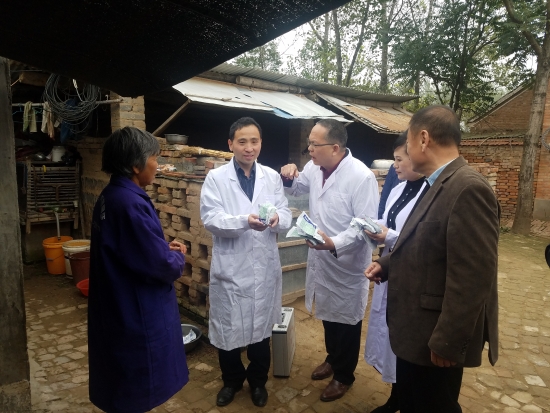 在紅山村豆莊建檔立卡貧困戶牛書山的波爾山羊養(yǎng)殖場,民盟專家組向牛書山贈送了科學養(yǎng)羊書籍和營養(yǎng)獸藥。針對一些圈養(yǎng)羊群出現(xiàn)的不良現(xiàn)象,河南省科技特派員趙慶楓博士從當前羊病的防治、羊群密度、羊的飼養(yǎng)管理等多方面進行了詳細解答和指導。豆莊村村民豆勇身患尿毒癥因病致貧,妻子想通過養(yǎng)雞產業(yè)致富,楊彥濤委員鼓勵她貧困不能失志,做到“弱鳥”先飛,靠養(yǎng)殖增收致富,引導她要想強身健體,“造血”比“輸血”效果好。趙慶楓博士給她家送來防病治病藥物,并向她詳細傳授了大棚內柴雞養(yǎng)殖技術及疫病防控要點。村民們激動地說,這樣的扶貧真正扶到了鄉(xiāng)親們的心坎上。