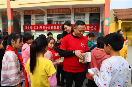10月24日,周大福河南區(qū)域負責人岳磊一行15人,帶著書包、文具、足球、藍球等學習用品,來到鄲城縣丁村鄉(xiāng)徐莊小學,為200余名學生送來了愛心大禮包。并為兩戶貧困戶送去了米面油等慰問品。
