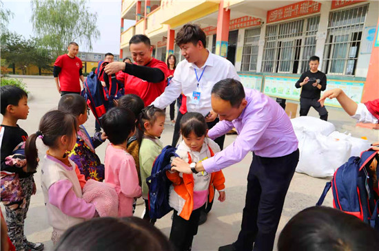 當日上午,周大福集團組織了15名員工組成義工隊,在周口區(qū)域負責人王保安的陪同下,帶著總價值3萬余元的300套愛心物資,送到學生手中。現(xiàn)場,他們與學生愛心互動、親切交流,為學生們背上書包、送上文具,關心學生生活和學習情況。當了解到學校資金緊張,師生還沒有統(tǒng)一服裝時。岳磊等人表示,將向上級申請,下一步積極為該校師生解決工作裝和校服問題。對此,徐莊小學師生熱烈鼓掌表示感謝。