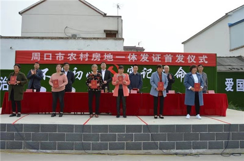 10月24日,周口市農(nóng)村“房地一體”不動(dòng)產(chǎn)權(quán)證書首發(fā)儀式在淮陽縣白樓鎮(zhèn)大郝村舉行,周口市自然資源和規(guī)劃局黨組成員、副局長劉東明、淮陽縣委常委李祥生等領(lǐng)導(dǎo)為首批農(nóng)房權(quán)利人頒發(fā)不動(dòng)產(chǎn)權(quán)證書。