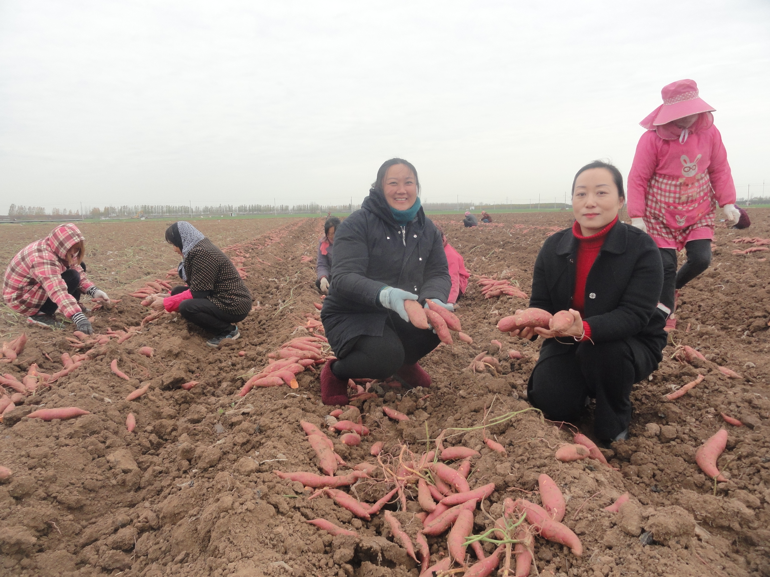 11月25日,商水縣張莊鄉(xiāng)大郭莊村返鄉(xiāng)農(nóng)民工郭燕燕(左)與鄉(xiāng)干部張麗娟(右)說(shuō)起紅薯,滿臉洋溢著豐收的喜悅,她種植的100畝優(yōu)質(zhì)紅薯正在收獲銷售。