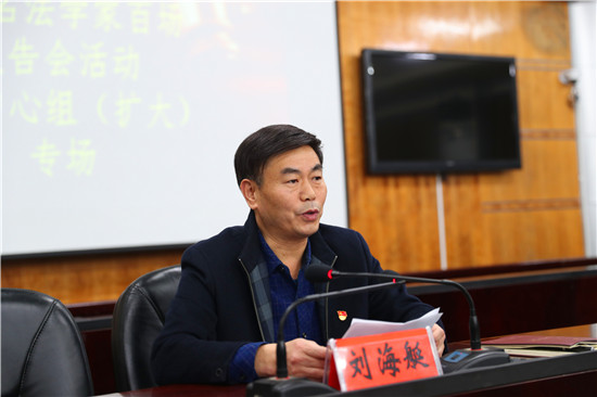 11月26日晚,太康縣在縣委綜合樓召開縣委理論學習中心組(擴大)“不忘初心、牢記使命”主題教育夜校法治宣講活動專場報告會。河南工業(yè)大學法學院教授、博士生導師譚波作《依法治縣與法治太康建設》專題講座??h委副書記、縣委政法委書記劉海艇主持會議??h副處級以上領導干部,縣直各單位黨政正職,縣委各部委辦副職,各鄉(xiāng)鎮(zhèn)鄉(xiāng)鎮(zhèn)長,人大、政協(xié)機關各委室主任、副主任共100余人參加會議。