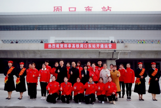 為慶祝鄭阜高鐵首發(fā),同時(shí)給乘客營(yíng)造一個(gè)溫馨舒適的乘車環(huán)境,提升城市溫度,12月1日,在團(tuán)市委的組織下,來自周口職業(yè)技術(shù)學(xué)院的80名青年志愿者聚集在周口東站,開展志愿服務(wù)活動(dòng)。記者在現(xiàn)場(chǎng)看到,志愿者身穿統(tǒng)一服裝,分布在站前廣場(chǎng)、售票廳、進(jìn)站口、候車廳的各個(gè)角落,他們有的幫助乘客取票;有的引導(dǎo)乘客,幫助乘客進(jìn)站;有的則幫助車站工作人員分散客流量等。志愿者們積極熱情的工作態(tài)度,得到了廣大乘客的好評(píng)。