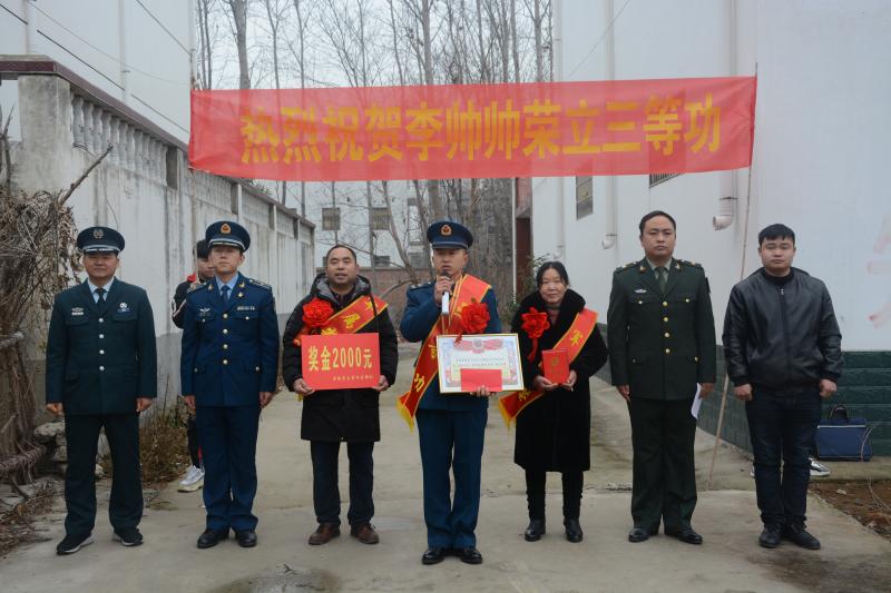 一人參軍,全家光榮;一人立功,全家榮耀。2020年1月2日,沈丘縣洪山鎮(zhèn)廟山李村聽(tīng)說(shuō)黃繼光生前部隊(duì)要來(lái)送喜報(bào),榮立三等功的李帥帥一家特地選擇在村口迎接這份榮譽(yù)。接過(guò)大紅喜報(bào),李帥帥的母親喜極而泣:活了幾十年了,送兒子當(dāng)兵也有12余年,今天是我對(duì)“軍屬光榮”四個(gè)字感觸最深的一次,也是最光榮的一天,沾了兒子的光了……