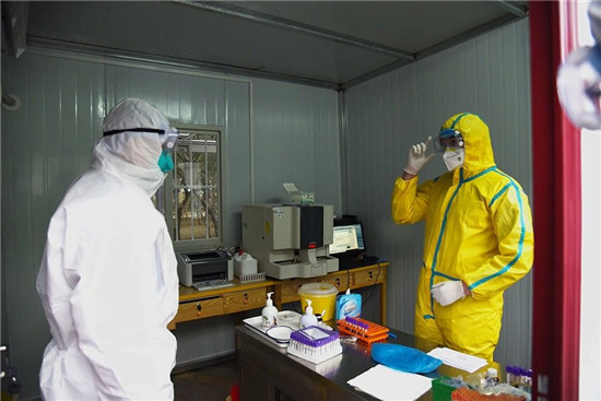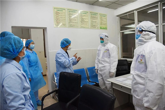 1月27日上午,鄲城縣人民醫(yī)院院長于健、書記高飛身著隔離服深入到發(fā)熱門診隔離區(qū)、感染科隔離病房及診室,安排部署防控工作,指出:按照控感工作要求,為防止交叉感染,從即日起,發(fā)熱門診、感染科病房、CT室、放射科、檢驗科等防疫一線工作人員,24小時工作在一線,直到疫情結(jié)束。