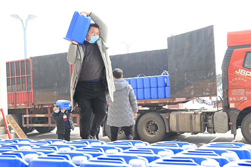 該公司總經(jīng)理馬媛媛介紹,她老家是周口的,在鄭州開辦的公司,公司業(yè)務主要是搞醫(yī)療物質配送?!爱斍皣谰囊咔樾蝿菡娴米屓撕軗?,為了能夠給家鄉(xiāng)提供一些力所能及的幫助,公司特意購置了這批醫(yī)用物質以解家鄉(xiāng)防控疫情的燃眉之急?!瘪R媛媛介紹,為了能在市場上購到這批貨物,公司從除夕晚上就開始聯(lián)系貨物,打了近百個電話,直到大年初四才在山東的一家公司聯(lián)系到貨源,排了6天隊之后,才購到10000斤消毒液、4000副醫(yī)用手套,貨到之后,公司馬不停蹄,立即拉了過來,讓這批貨物盡快派上用場。