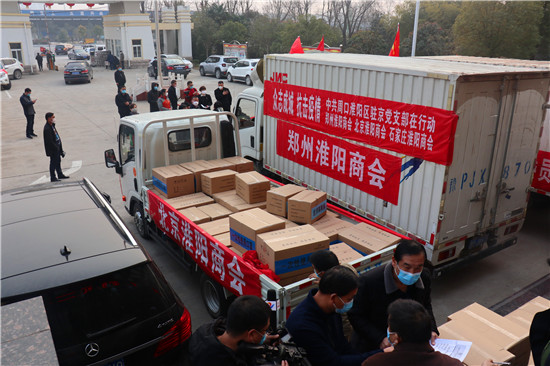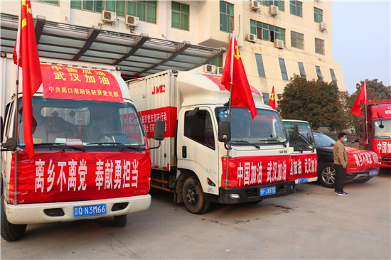 2月4日,隨著一輛輛裝滿物資的汽車緩緩駛?cè)胫芸?,周口市淮陽區(qū)駐外流動黨員黨支部的一場捐款捐物活動如期進行。