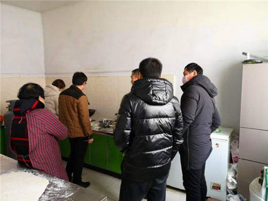 疫情越來越嚴(yán)重,鄉(xiāng)干部全部下沉到行政村,搞宣傳、設(shè)卡點(diǎn)、控人流。因?yàn)樵绯鐾須w無暇在家就餐,加上飯店閉店,鄉(xiāng)政府伙房每餐都就餐人數(shù)從平時(shí)一二十人激增到五六十人。買不到饅頭吳素霞就親手蒸,買不到面條她就親手搟。特別是午間各村卡點(diǎn)人員交接時(shí)間不一,送走一波人又來一波。剛洗刷完餐具、清掃好廚房又該準(zhǔn)備下一餐了。