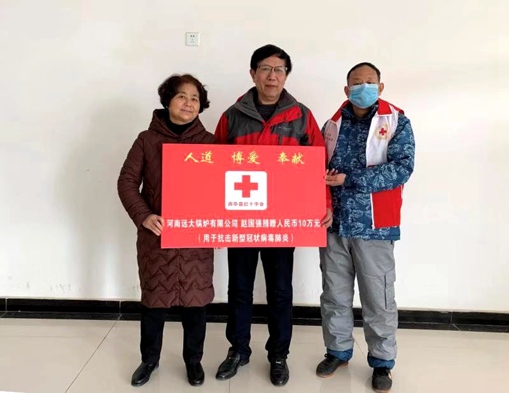 手術(shù)后在鄭州休養(yǎng)的河南遠(yuǎn)大鍋爐黨支部書記趙國(guó)強(qiáng),在看到廣大醫(yī)護(hù)人員、共產(chǎn)黨員紛紛申請(qǐng)到抗疫一線時(shí),他躺不下了,不顧身體病痛,于1月31日和家屬專程趕回西華,向西華縣紅十字會(huì)捐款10萬(wàn)元,用于抗擊新型冠狀病毒感染的肺炎疫情防控工作。