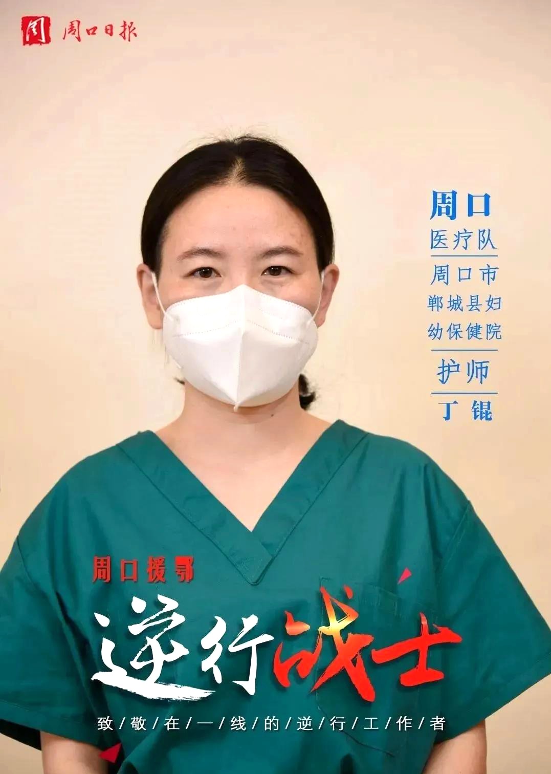 今年27歲的丁錕來自鄲城縣婦幼保健院重癥監(jiān)護(hù)室,她臨床經(jīng)驗(yàn)豐富,具有扎實(shí)的危重患者救治護(hù)理能力。在接到醫(yī)院支援武漢的通知后,第一時(shí)間向醫(yī)院遞交了請(qǐng)戰(zhàn)書,主動(dòng)請(qǐng)纓支援武漢疫情前線。她奔赴武漢時(shí),1歲多的孩子還沒斷奶,她不但經(jīng)受著自己生理的痛苦,還經(jīng)受著孩子斷奶的精神打擊,以國家為重,毅然前行。正詮釋了她以“位卑未敢忘憂國”為格言而落實(shí)到具體的行動(dòng)上。