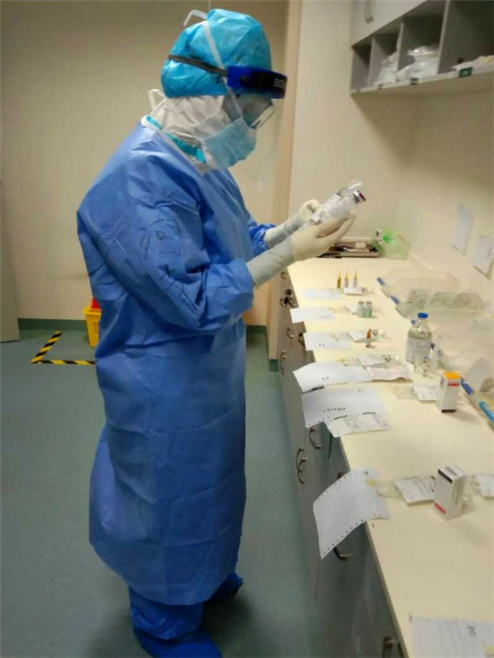周口市中心醫(yī)院心血管內(nèi)科三病區(qū)護(hù)士孫慧慧是周口援鄂醫(yī)療隊(duì)第一個(gè)上“治療+辦公班”的護(hù)士。“可能新疆隊(duì)的老師知道我們兩家醫(yī)院使用的是同一個(gè)數(shù)字化醫(yī)療處理系統(tǒng),我又經(jīng)常上辦公班的緣故吧?!睂O慧慧說(shuō),“簡(jiǎn)單來(lái)說(shuō),辦公班負(fù)責(zé)處理醫(yī)囑,治療班負(fù)責(zé)配兌藥物。在這里,一個(gè)人要擔(dān)負(fù)起這兩個(gè)職能?!?/p>