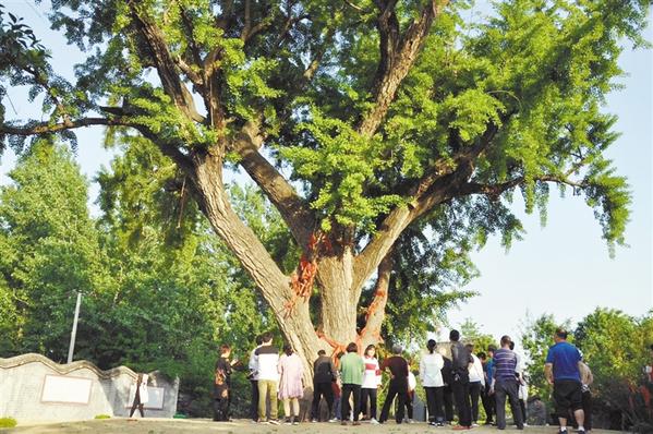 許村白果樹 位于商水縣鄧城鎮(zhèn)許村西,為西漢時期種植。1983年被定為縣級重點文物保護(hù)單位。 白果樹學(xué)名銀杏,以壽命長而著稱。許村白果樹高20米左右,胸圍7.5米,覆蓋地面1畝許。三國時期修灌溉渠道,堆土封在樹身上,地平面使樹干留下細(xì)腰,后雨水沖刷使地面降低,露出樹根,外皮綻破,被后人傳說為漢光武帝劉秀在此歇息時拴馬所勒。 歷經(jīng)千年風(fēng)霜,白果樹仍枝葉繁茂,蒼勁挺拔,成為遠(yuǎn)近聞名的壽星古樹和人文景觀。