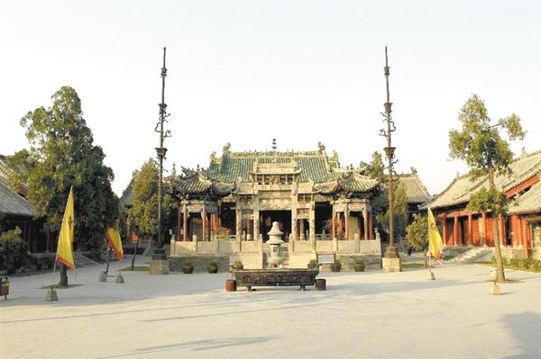 周口關(guān)帝廟 位于河南省周口市川匯區(qū)中州大道沙潁河北岸,是“豫平原保存較好,建筑藝術(shù)價值較高的古建筑群”。 周口關(guān)帝廟始建于康熙三十二年(1693年),乾隆、嘉慶年間多次擴(kuò) 修,至道光十六年(1832年)全部建成,歷時145年。東西寬105米,南北長158米,面積12590平方米,占地20余畝。 周口關(guān)帝廟是全國重點文物保護(hù)單位,號稱“周口八景之冠”。它猶如一段凝固的歷史,記載著昔日周家口商業(yè)的繁榮和經(jīng)濟(jì)的鼎盛。關(guān)帝廟本名“山陜會館”。