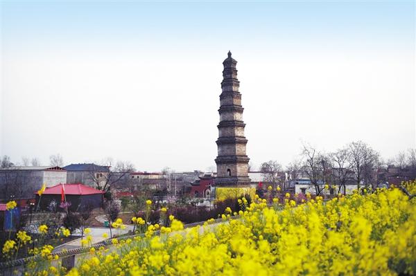 壽圣寺塔 位于商水縣郝崗鄉(xiāng)北常社店村,始建于北宋明道二年(1033年),明嘉靖二十八年進(jìn)行過大修。1998年9月,壽圣寺塔又進(jìn)行了一次大修。壽圣寺塔為九級樓閣式磚塔,高41.5米,平面呈正六邊形,塔內(nèi)砌有盤旋的塔道,可逐級登高遠(yuǎn)眺。塔體從底至頂漸收勻稱,成正六棱體錐形,塔頂形似寶葫蘆,給人以挺拔雋秀之感。塔的層檐收放尺寸自然得體,既保護(hù)了塔墻免遭雨雪侵蝕,又給予塔體以美的裝飾,看上去既規(guī)整肅穆,又不呆板。