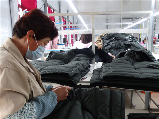 疫情不能放松,復(fù)工復(fù)產(chǎn)也要穩(wěn)妥推進(jìn)。連日來,沈丘縣婦聯(lián)鼓勵(lì)引導(dǎo)和組織廣大婦女群眾科學(xué)安全有序助力企業(yè)、農(nóng)業(yè)合作社、扶貧車間等復(fù)工復(fù)產(chǎn),確保戰(zhàn)"疫"扶貧兩不誤,為統(tǒng)籌推進(jìn)防疫戰(zhàn)和脫貧攻堅(jiān)戰(zhàn)貢獻(xiàn)巾幗力量。圖為沈丘縣周營鎮(zhèn)馬營村慧恩服飾有限公司來料加工扶貧車間內(nèi),女工們正在生產(chǎn)線上加工訂單服裝。