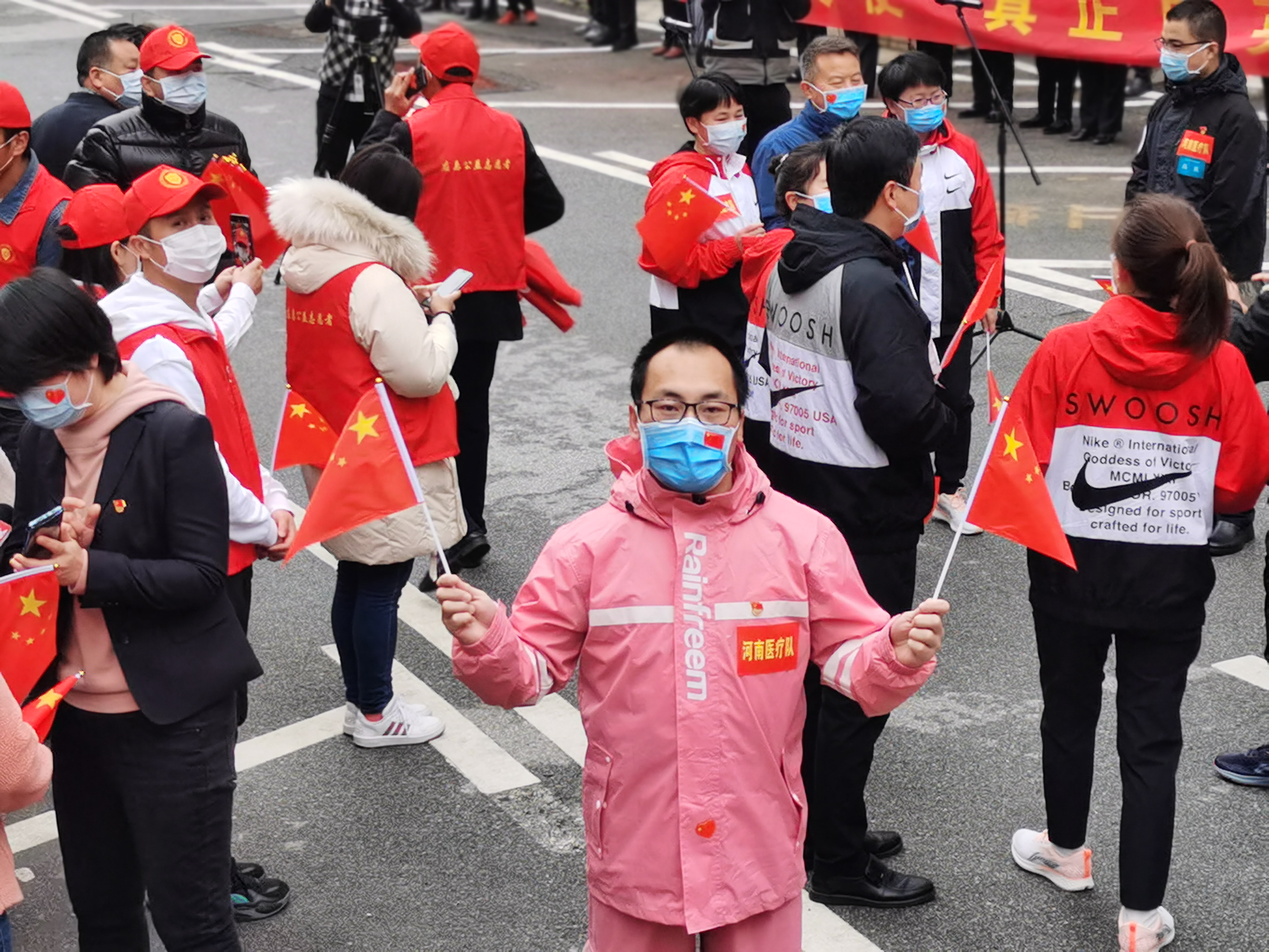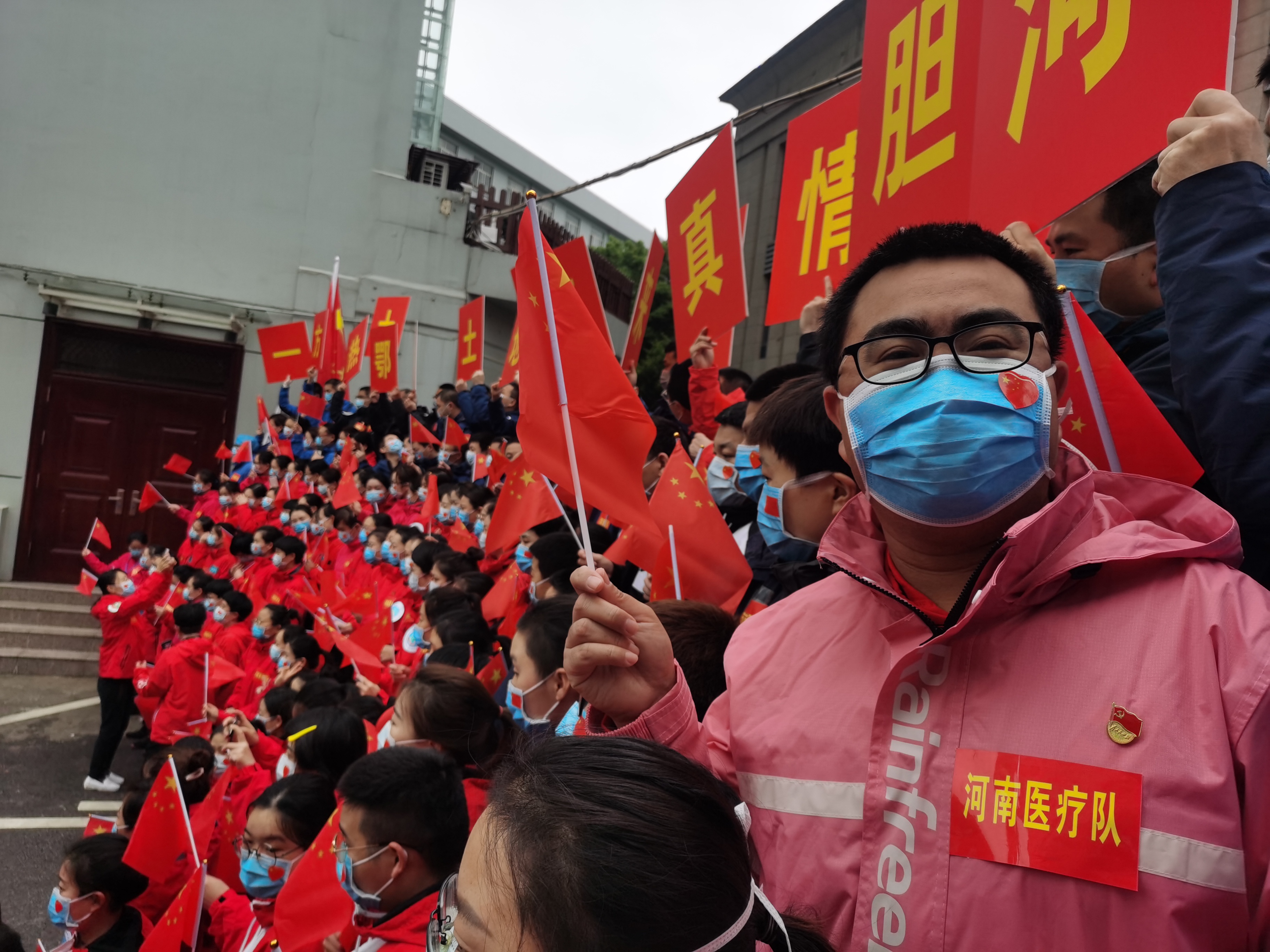 3月30日上午,在完成各自使命之后,按照河南省援鄂醫(yī)療隊(duì)統(tǒng)一安排起程凱旋。湖北街頭萬人空巷送英雄,街頭車輛長鳴笛,沿街循環(huán)播放紅歌《歌唱祖國》,勝利的歌聲激蕩勝利的心情。
