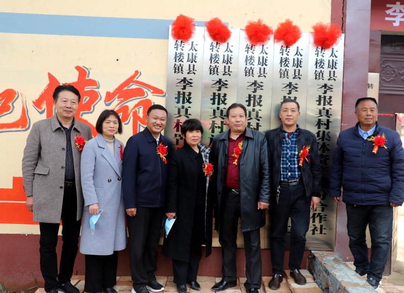 太康縣政協(xié)副主席劉鳳芹、太康縣農業(yè)農村局局長劉東、河南豫墾農業(yè)集團董事長范建華,轉樓鎮(zhèn)黨委書記楊傳俊以及黨政班子成員出席了揭牌儀式。參加儀式的還有牽涉到“三變”改革試點的11個村的村兩委干部以及李報真全體村民。儀式由鎮(zhèn)長陳靖輝主持。