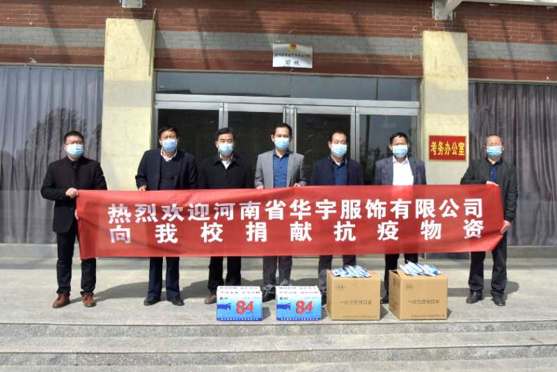 校園里的花朵迎風綻放,但這個春天卻缺少了師生矯健的身影。4月13日,在周口市部分中學(xué)陸續(xù) 復(fù)課之際,河南省華宇服飾有限公司董事長王華偉來到淮陽區(qū)實驗高中,為該校捐贈一次性口罩2000只 、84消毒液2箱。據(jù)了解,為助力學(xué)校打贏疫情防控阻擊戰(zhàn),連日來,華宇服飾有限公司已向太康、扶溝 、淮陽等縣、區(qū)部分中學(xué)捐贈一次性口罩20萬只,價值30多萬元。