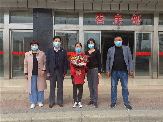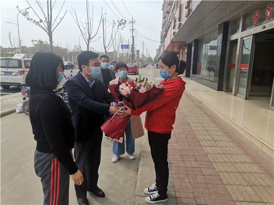 鄲城縣婦幼保健院院長亢國良帶領副院長羅素霞、護理部主任王翠蘭,到隔離點迎接該院援鄂英雄丁錕回家,為英雄送去鮮花,并全程護送丁錕安全返回家中。