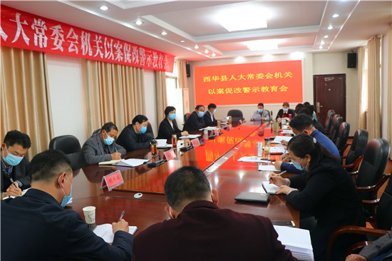 4月16日,西華縣人大常委會機關(guān)召開全體人員會議,開展以案促改警示教育,安排部署脫貧攻堅等工作。縣人大常委會黨組書記、主任周曉燕,副主任趙曉春,黨組成員、副主任王心坎、龐有敬出席。黨組副書記、副主任張國玉主持。