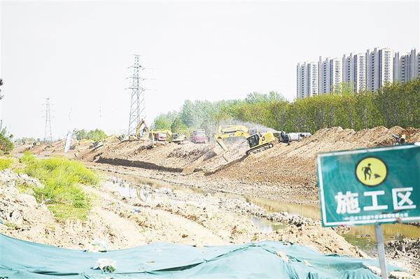 4月15日上午,洼沖溝水系植物園杜樓橋施工現(xiàn)場,幾十輛工程機(jī)械車緊張作業(yè),熱火朝天的施工場景令人振奮。