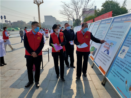 4月26日是我國(guó)第十三個(gè)“全國(guó)瘧疾日”。 今年的宣傳主題是“消除瘧疾控新冠,同防輸入再傳播”。4月24日,鄲城縣疾控中心在世紀(jì)廣場(chǎng)開(kāi)展了瘧疾防治系列宣傳活動(dòng)??h人大常委會(huì)副主任張愛(ài)聯(lián)、縣衛(wèi)健委主任付登霄在縣疾控中心主任張吉志陪同下參觀了宣傳活動(dòng)。