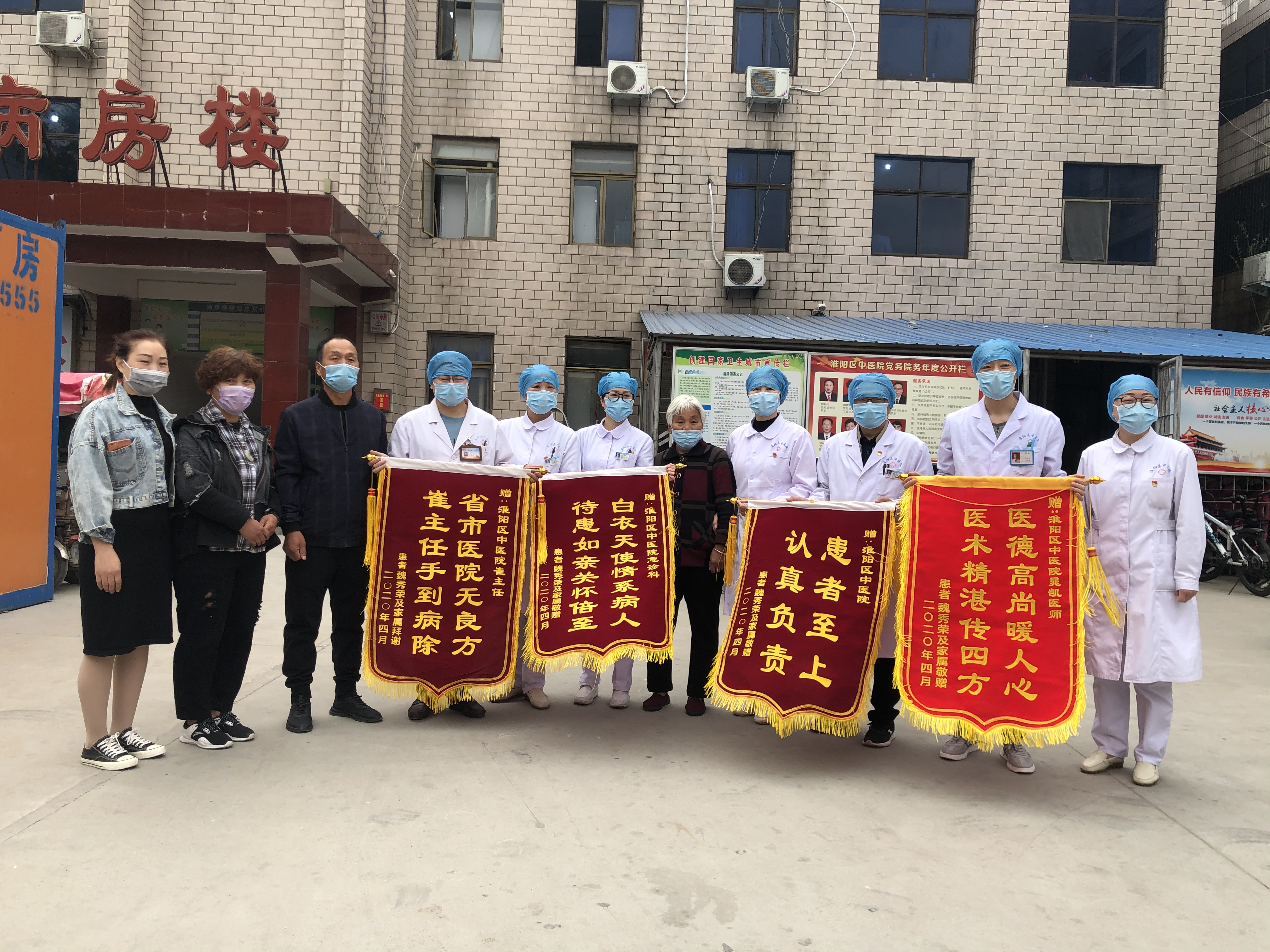 “真是太感謝你們了!技術(shù)和服務(wù)絕對(duì)雙一流!”4月27日上午,一名86歲老太太的家屬手捧四面錦旗來(lái)到淮陽(yáng)區(qū)中醫(yī)院,親自將錦旗送到副院長(zhǎng)劉永、外科主任崔成品、ICU醫(yī)師晁凱、護(hù)士長(zhǎng)劉婷婷、急診科護(hù)士長(zhǎng)李琴手中?;颊呒覍傥罩拗魅蔚氖盅酆瑹釡I久久不能松開,“真是沒想到能撿回我那老母親的一條命!多虧了崔主任,多虧了咱們醫(yī)院的全體醫(yī)護(hù)人員,在別的醫(yī)院都不給治療了,是你們中醫(yī)院幫我家老太太搶回一命啊!”患者家屬的心情久久不能平復(fù),感激之情難以言表。
