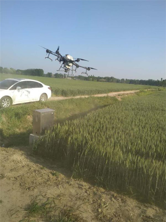 現(xiàn)在正值小麥孕穗抽穗期的關(guān)健時間節(jié)點,也是各種病蟲害的高發(fā)期,做好這一時期的田間管理工作對確保小麥的豐收至關(guān)重要。將殺蟲劑、殺菌劑、微肥、抗旱劑等混合加水噴霧能同時實現(xiàn)防治小麥病蟲害,預(yù)防干熱風(fēng),防治倒伏和增加千粒重的效果。利用無人機作業(yè),提高了工作效率,提升了用藥效果,降低了勞動成本。