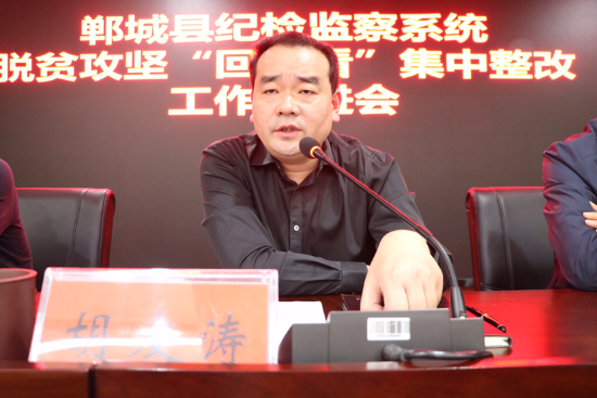 5月5日上午,鄲城縣紀(jì)委監(jiān)委召開全縣紀(jì)檢監(jiān)察系統(tǒng)脫貧攻堅(jiān)“回頭看”集中整改工作推進(jìn)會(huì)。縣委常委、縣紀(jì)委書記、監(jiān)委主任胡友濤出席會(huì)議。