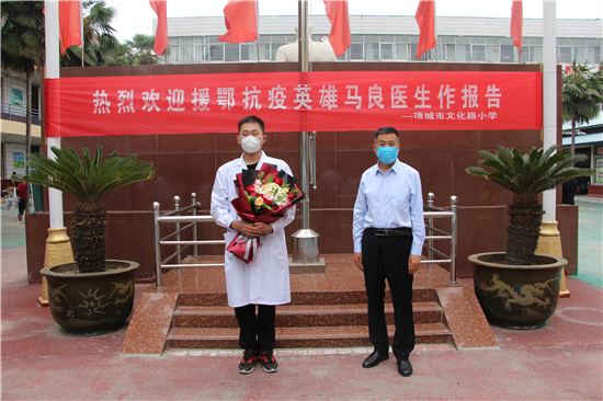 為彰顯榜樣力量,傳承抗“疫”精神,5月6日,項城市文化路小學(xué)邀請項城援鄂抗“疫”英雄代表項城市中醫(yī)院脾胃肝膽科護(hù)士馬良來校為廣大師生作報告,講述戰(zhàn)“疫”背后的故事,厚植愛國主義情懷。