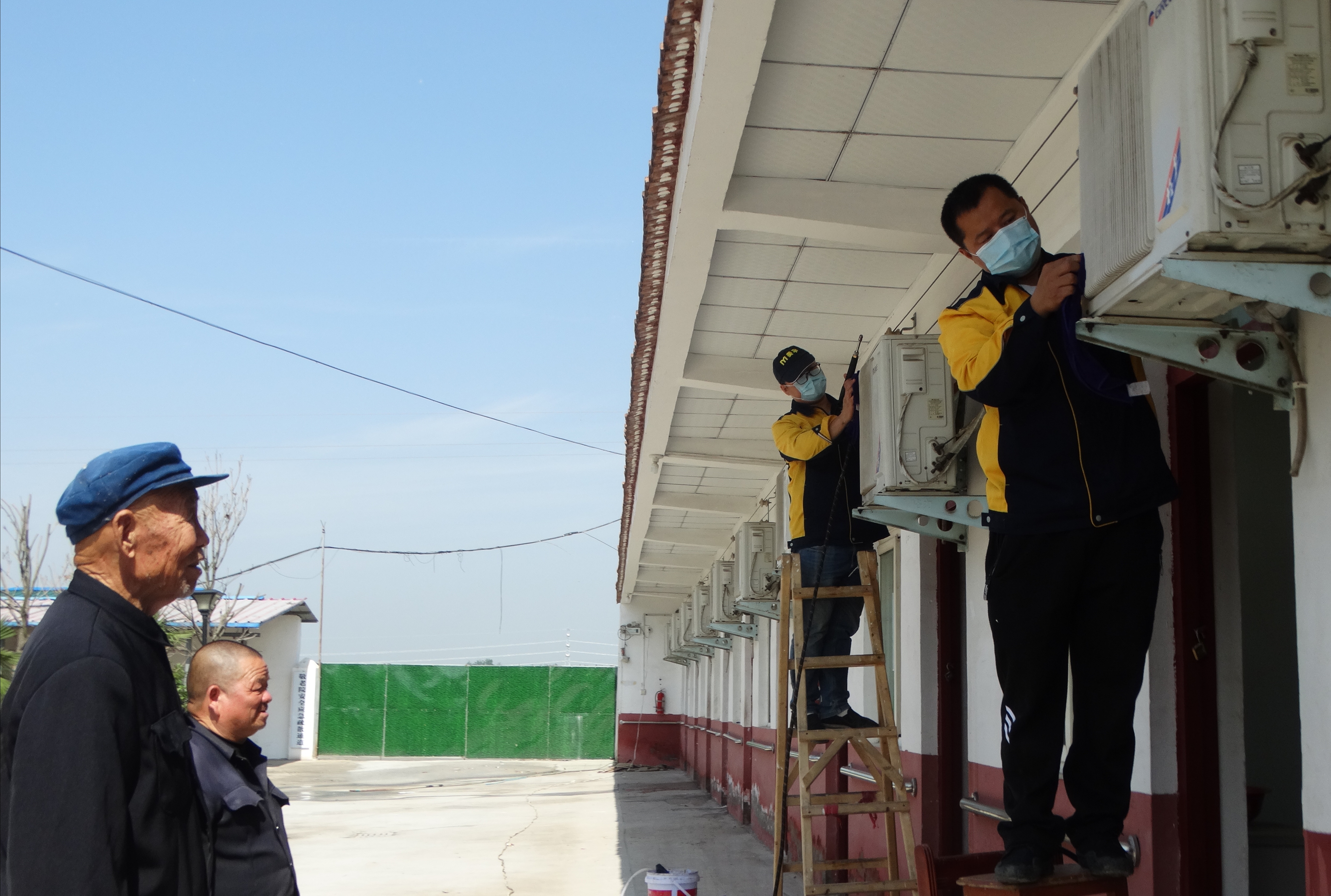 在敬老院,沈丘縣點(diǎn)滴電器公司的職工認(rèn)真為每個(gè)五保老人房間的空調(diào)都進(jìn)行了清洗、消殺、維護(hù)?!跋胂胂奶靵淼搅?,看到自己房間的空調(diào)被清洗得干干凈凈,俺打心眼里高興?!弊跇涫a下休息的五保老人王大媽興奮地告訴記者。