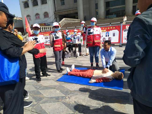 與此同時(shí),該縣紅十字會(huì)還現(xiàn)場對廣大群眾傳授心肺復(fù)蘇等急救方法。