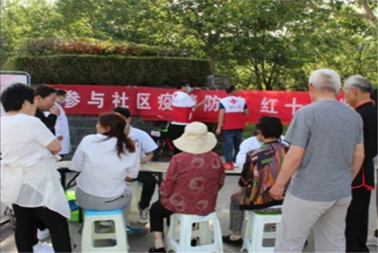 活動現(xiàn)場,區(qū)紅十字會組織志愿者和多家醫(yī)療單位醫(yī)務人員在廣場懸掛“參與社區(qū)疫情防控,紅十字救在身邊”宣傳活動橫幅,設立咨詢臺、擺放宣傳展板,活動緊貼群眾,內(nèi)容形式豐富。