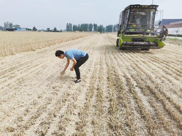 日前,我市小麥相繼進入成熟期,田地里一片金黃,滾滾麥浪中收割機來回穿梭,農民已經開始收麥了。圖為5月24日上午,沈丘縣李老莊鄉(xiāng)部分麥子開始收割,飽滿的麥粒從收割機中流出,農民的臉上綻放出笑容。