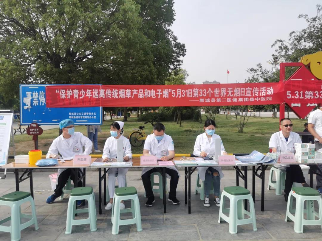 今年5月31日是第33個(gè)世界無煙日,本次主題是“保護(hù)青少年遠(yuǎn)離傳統(tǒng)煙草產(chǎn)品和電子煙”。5月30日上午,鄲城縣第二醫(yī)療健康服務(wù)集團(tuán)縣中醫(yī)院在世紀(jì)廣場開展了義診宣傳活動(dòng),進(jìn)一步加強(qiáng)煙草危害和控?zé)熣咝麄?,科學(xué)引導(dǎo)青少年樹立拒絕傳統(tǒng)煙草產(chǎn)品和電子煙的健康理念,遠(yuǎn)離煙草危害,保護(hù)青少年身心健康。