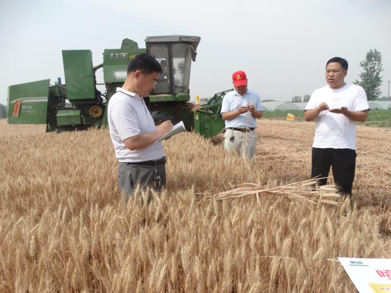 上午9點(diǎn),專家組首先來到石槽集鎮(zhèn)虎頭村一塊小麥產(chǎn)示范田基地。“您瞧瞧,俺這麥長得多好,遍地金黃,麥穗稠滿,穗頭勻稱,籽粒飽滿。”村民王天齊興奮地告訴筆者?!斑@塊地實(shí)際面積為2.3畝,種植的是百農(nóng)307新品種,估摸著超1300斤沒問題!”王天齊信心滿滿。隨后,縣農(nóng)業(yè)專家組吳和平等一行參照農(nóng)業(yè)農(nóng)村部小麥高產(chǎn)創(chuàng)建產(chǎn)量測產(chǎn)驗(yàn)收辦法,經(jīng)過嚴(yán)格的面積丈量核實(shí)、機(jī)械收獲脫粒、稱量、扣除水分和雜質(zhì)后,實(shí)際畝產(chǎn)達(dá)1442.6斤,從而刷新了全縣2020年小麥小面積高產(chǎn)攻關(guān)最高紀(jì)錄。