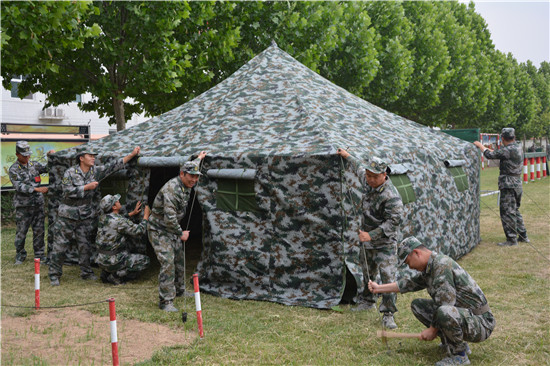 在這些民兵當(dāng)中,擔(dān)負(fù)醫(yī)療救護(hù)的綜合勤務(wù)排更是不簡(jiǎn)單。他們是來(lái)自周口長(zhǎng)城醫(yī)院的醫(yī)護(hù)人員,在今年的抗疫戰(zhàn)中,他們充分發(fā)揮基層黨員民兵作用,無(wú)論白天黑夜,冒著雨雪嚴(yán)寒,在抗疫一線(xiàn)的卡點(diǎn)上都留下了他們迷彩身影。趙軍濤是來(lái)該醫(yī)院的醫(yī)護(hù)人員,同時(shí)也是一名退伍老兵,他說(shuō),新時(shí)代的強(qiáng)軍戰(zhàn)歌已經(jīng)奏響,要以此次集訓(xùn)為契機(jī),不斷強(qiáng)化練兵備戰(zhàn)的緊迫意識(shí)、危機(jī)意識(shí),以飽滿(mǎn)的政治熱情投入到緊張的訓(xùn)練中,用優(yōu)異成績(jī)?yōu)榇▍R區(qū)的后備力量建設(shè)增光添彩。