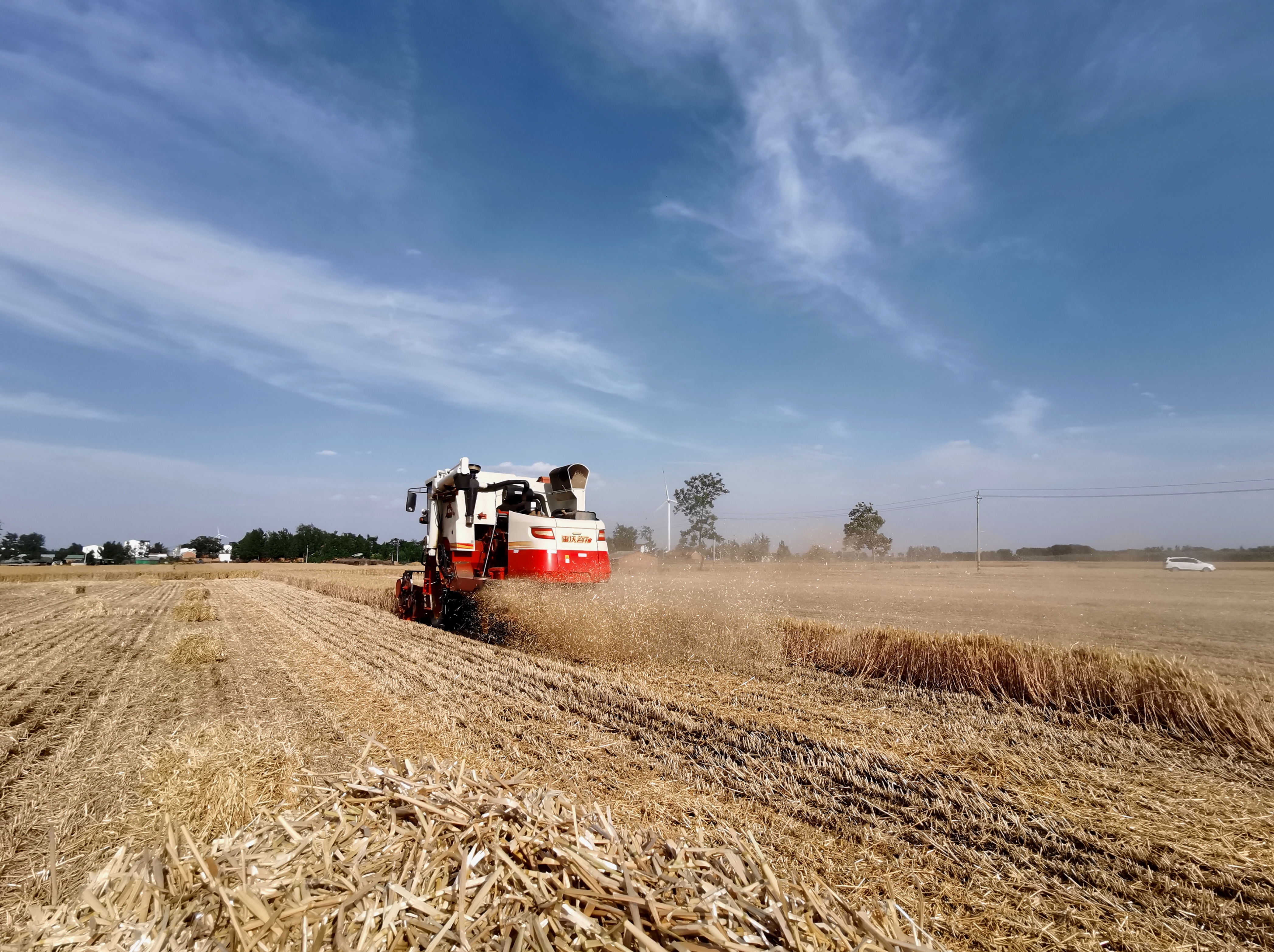 驕陽似火,麥香四溢。6月的西華鄉(xiāng)村大地到處一片繁忙景象。一臺臺收割機(jī)在金黃色的麥浪中轟鳴著馳騁,隨著小麥?zhǔn)崭顧C(jī)駛過,一顆顆金燦燦的麥穗被“吃”進(jìn)收割機(jī),然后,一粒粒飽滿的麥子從出倉口“吐”進(jìn)農(nóng)用車車斗里,農(nóng)民的臉上洋溢著豐收的喜悅。